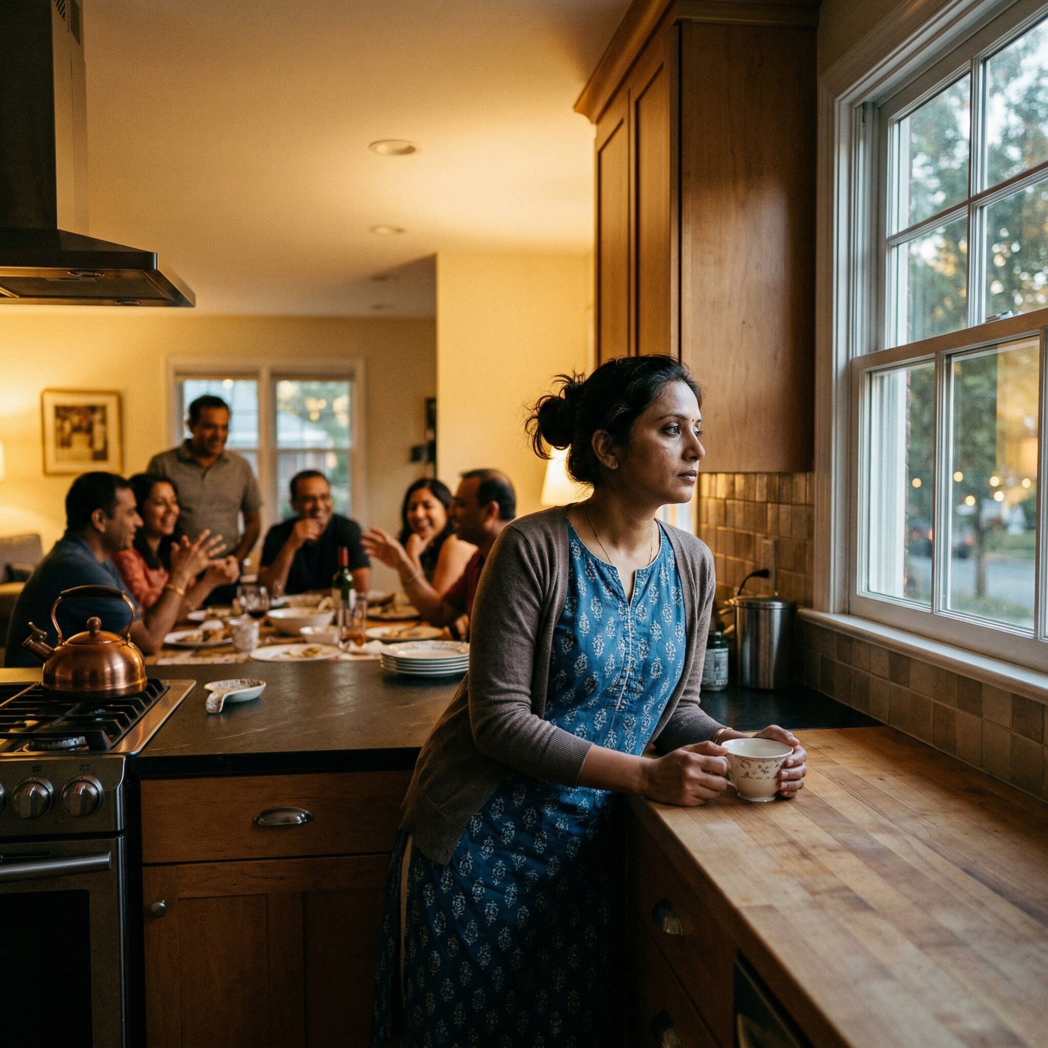 - An anchor of identity. For South Asian diaspora adults navigating the particular exhaustion of living between two cultural worlds — too desi for one context, not desi enough for another — family connection can provide a grounding sense of who you are and where you come from. That anchor matters enormously for mental stability.